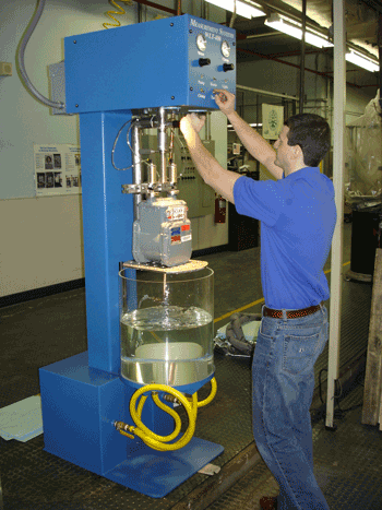 | Measurement Systems WLT-800HP is the answer to concerns of testing commercial size diaphragm meters up to 1,000 cfh and rotary meters up to 11M at pressures greater than 15 psi. In many cases these meters are tested in tubs or sinks with no protection for the operator. With the WLT-800HP the meter is contained in a steel enclosure while the operator views the submerged meter on a video monitor. A video camera inside the enclosure is rotated around the acrylic tank to get a 360 degree view of the meter. Pressures of up to 175 psi can be applied to the meter under test. |